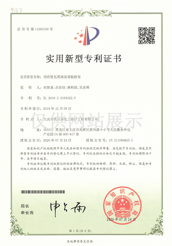 頂排管瓦楞墻**輻射室