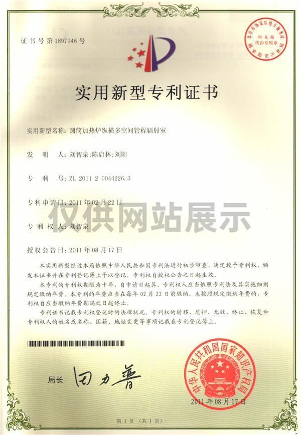 加熱爐豎管內(nèi)空間臺式管程輻射室