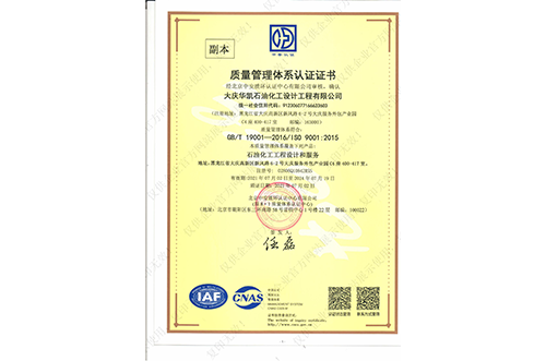 我公司具有化工工程專業(yè)甲級,石油及化工產(chǎn)品儲運、煉油工程、管道輸送、油田地面、制漿造紙工藝、城鎮(zhèn)燃?xì)夤こ?、建筑工程乙級設(shè)計資質(zhì),石化、建筑乙級咨詢資質(zhì),并通過了ISO9001質(zhì)量管理體系的認(rèn)證、環(huán)境管理體系認(rèn)證和職業(yè)健康安全管理體系認(rèn)證,具有Ⅰ、Ⅱ、Ⅲ類壓力容器設(shè)計資格證及壓力管道設(shè)計資格證。